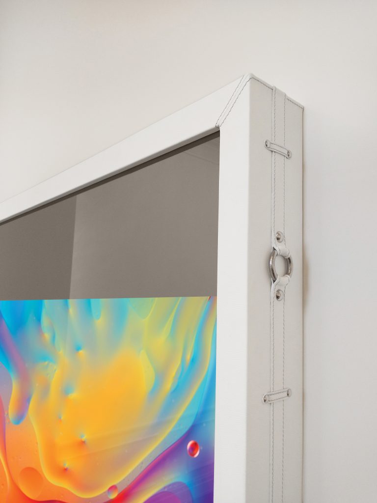 My conversation with Elizabeth and Jerome Levin, Senior Production Manager, centers on her business and decades of experience with fine art frames and Mirror TVs, was enlightening, motivating and inspirational. Elizabeth’s knowledge of framing, along with her expertise in frame customization, makes Reflectel stand out. Their recent bespoke projects, like hand stitched leather frames inspired by Hermes accessories, Cartier watches and Ferrari car seats, showcase their originality and attention to detail.