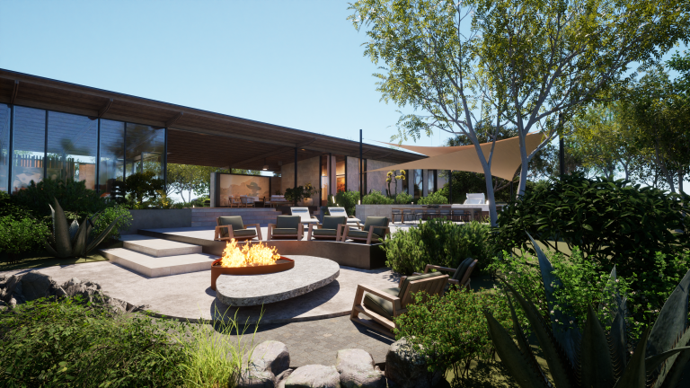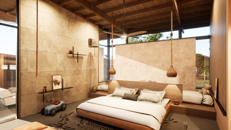 Politis illuminates a residential project on the line that is currently seeking construction pricing. The client’s brief called for a sprawling rural Texas ranch to earmark a family’s legacy for generations to come. The floor plan splits the house into three parts – one for the homeowners, one for the homeowners’ son, and one for the grandchildren. The parts are interconnected by covered exterior spaces, undulating the home from inside to out. “We patterned the perforation using the dots and dashes of Morse Code. Sometimes technology can be an underlayment, used in ways that even the client doesn’t know about.”